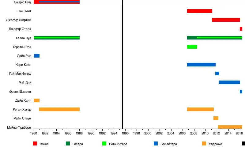 Эндрю Вуд † Реган Хагар Шон Смит Майк Хоммэл Гас МакИнтош Торстен Рок Дэйв Хант Дэйв Риз |