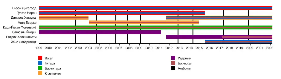 - Бьорн Диксгорд — вокал, гитара, акустическая гитара, перкуссия, музыка, слова (1999—наши дни)