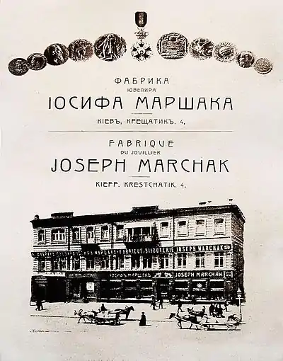 Ничто не может его остановить, даже пожар, принесший в 1899 году огромные убытки его мастерской. Напротив, пройдя через такое испытание, он с новой силой возрождает производство, реконструирует и увеличивает свои помещения, устанавливает самое современное оборудование и применяет очень прогрессивные для той эпохи технологии разделения труда. В его мастерских и магазинах в Киеве работают уже 150 человек. Таким образом через двадцать лет Иосиф Маршак становится одним из самых знаменитых ювелиров Российской Империи…