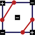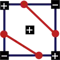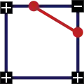 - Случай 2: у одной вершины знак отличается