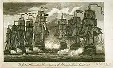 ![]() Marengo против HMS London, 13 марта 1806; рисунок Дюкло-Легри; тушь, перо |