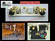- Панорамные камеры (Pancam) — помогают изучить структуру, цвет, минералогию местного ландшафта;