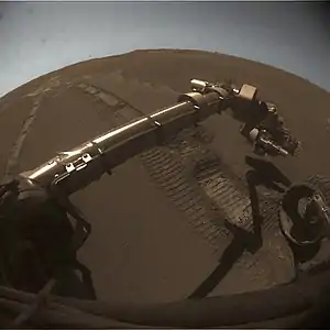 - Микрокамера (MI) — получает увеличенные изображения марсианской поверхности в высоком разрешении, своеобразный микроскоп;
