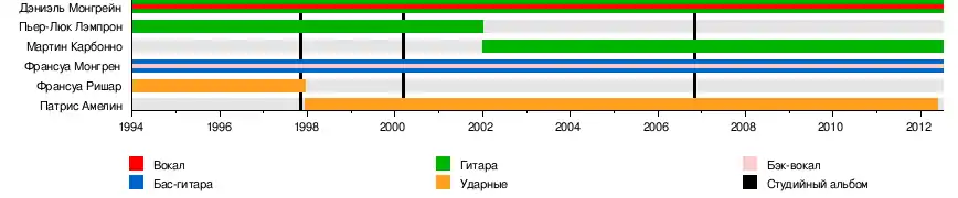 - Франсуа Монгрен (1994 – настоящее время) — бас-гитара, бэк-вокал