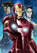 Железный человек (яп. アイアンマン айан ман) — первая часть тетралогии; состоит из 12ти эпизодов. Была создана совместной работой Юдзо Сато с Уорреном Эллисом. Первая пилотная серия была показана в Японии на канале Animax 25 сентября 2010, а трансляция сериала началась 1 октября 2010 и закончилась 17 декабря 2010 года. Она транслировалась также на канале G4 в США наряду с аниме «Росомаха» с 29 июля 2011 года[11][12].