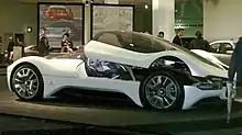 Экстерьер выполнен из углепластика с задними диффузорами и двумя спойлерами, которые автоматически поднимаются на скорости. Лобовое стекло сделано из плексигласа и простирается от передней до задней части автомобиля. Это необходимо из-за низкой посадки водителя, а также отсутствия боковых зеркал заднего вида.