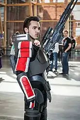 Разработчики долго работали над концепцией главного героя, чтобы подчеркнуть исключительность. Впоследствии было решено включить в игру редактор персонажа, чтобы игрок мог выбирать главному герою внешность, пол, характер, а также военное прошлое. Таким образом он мог быстрее привязываться к персонажу[22]. В основе концепции образа лежала идея, что главный герой, подобно Джеку Бауеру или Джеймсу Бонду, будет наделён некими правительственными привилегиями, позволяющими ему свободно перемещаться по вселенной и «вершить добро»[41]. На определённой стадии разработок BioWare решили, что главным героем будет женщина, однако позже решили ввести возможность выбирать пол, чтобы игроку, среди которых преобладают мужчины, было бы проще отождествлять себя с управляемым персонажем[48]. Фамилию «Шепард» было решено дать в честь Алана Шепарда — первого американца, полетевшего в космос, — чтобы американские игроки могли видеть в герое параллель со «своими астронавтами», а также по той причине, что эта фамилия довольно распространена в США и должна вызывать «родные ассоциации»[49]. Красный символ «N7» на костюме героя должен был символизировать жертву, которую Шепард готов(a) принести ради спасения галактики[50]. В ранней концепции управляемый персонаж, избравший путь отступника, должен был рано или поздно попасть под власть Жнеца и стать злодеем, как и Сарен Артериус, постепенно деградируя до получеловека-полумашины, и в конце концов в такой ситуации Шепард(а) попыталась бы уничтожить человеческая организация СПЕКТР[47]. Стандартная внешность мужского персонажа была скопирована с Марка Вандерлу — голландской модели[51]. За основу стандартной внешности Шепард-женщины не брали чей-либо образ, поэтому он разнится в следующих играх[52].