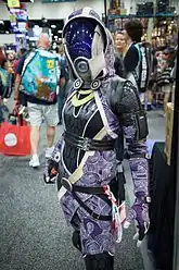 Самым первым персонажем, созданным разработчиками, стал Сарен Артериус, по подобию которого затем и создавалась раса турианцев[54]. Турианцы в ранней концепции игры выступали врагами человечества, и поэтому для оказания психологического эффекта им был придан угрожающий внешний вид. В ранних набросках они были больше похожи на птиц. Изначально планировалось сделать турианцев голыми для большего устрашения, поэтому их тело покрыто экзоскелетом. В конце концов было решено сделать турианцев одной из рас Цитадели, но сохранить их милитаристский дух и враждебность к людям. Однако для избежания излишней штампованности турианцев как «плохих ребят» команда решилa сделать представителя их расы одним из ближайших союзников Шепард(а). За основу внешности Гарруса Вакариана был взят стандартный концепт-арт, но уже в начале было решено, что он будет носить сине-чёрный костюм[55]. В первой части Mass Effect Гаррус не может вступить в роман с главным героем, так как разработчики не были уверены, что инопланетянин вызовет у кого-либо из игроков романтические чувства[56].