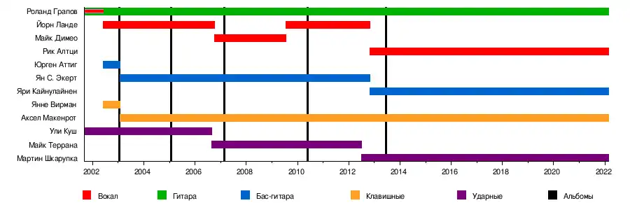 - Йорн Ланде — вокал (2003—2006, 2009—2012)