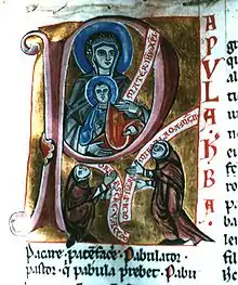 Буква P второй азбуки украшена изображением Богоматери с младенцем и двух монахов. Подписи на свитках, изображенных в руках монахов, сообщали, что рукопись написана Вацерадом и проиллюстрирована Мирославом в MCII году. Вацлав Ганка этот год идентифицировал как 1102, затем Павел Йозеф Шафарик и Франтишек Палацкий заметили над C черту, которая по правилам немецкой скорописи означала удвоение C, и датировали рукопись 1202 годом. Наконец, Йосеф Эмлер отметил, что подобные правила сокращения не использовались в средние века. При ближайшем рассмотрении оказалось, что белая краска, которой теперь выведены свитки, совершенно отлична от используемой в других миниатюрах, и поэтому подписи признаны позднейшей подделкой. По косвенным признакам рукопись датирована XIII веком[1].