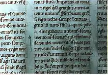 Главную ценность рукописи составляют около тысячи чешских глосс, доставляющих важнейшие сведения о древнечешском языке. Большинство из этих глосс приписано между строк, но некоторые вплетены в основной латинский текст. Чешские глоссы были найдены 14 июня 1827 году Вацлавом Ганкой, который по просьбе кёнигсбергского профессора Эберхарда Готлиба Граффа подыскивал в Музее словари с немецкими глоссами, и опубликованы в 1833 году. Палеографический разбор был проведен лишь в 1878 году. Адольфом Патерой. Он заметил, что большинство чешских глосс сфабриковано из латинских, при тщательном рассмотрении видны следы подчисток, различия оттенков старых и новых чернил, смешение в одной глоссе букв, относящихся по начертанию к различным периодам, и проч.[3] Рассмотрим, например, глоссу «Věnec» (см. рис. 3). В печатном экземпляре вместо этой глоссы значится: coronamus velamus, в рукописи, видимо, — coronam9 uelam9. Corona осталось, из m9 сделано w, e приписано, из букв la, которые были частично выскоблены, сделано c, m9 оставлено, но зачеркнуто[4]. На фотографии хорошо видна разница в цвете старых и новых чернил.