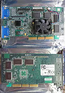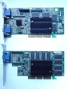 | Millennium G400 MAX | Toucan | 250 | 2x1 | 150 | 200 | 128 | 32 Мб SGRAM | Два VGA-выхода. Охлаждалась вентилятором. |