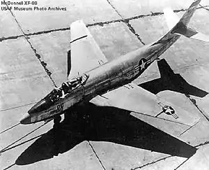 В 1946 году Стратегическое командование ВВС США обнародовало техническое задание для так называемого «истребителя глубокого проникновения», предназначенного в основном для сопровождения Convair B-36. Одним из претендентов стал McDonnell XF-88, прототип, разработка которого началась в 1947 году. Этот самолёт был снабжён двумя двигателями Westinghouse, расположенными по бокам фюзеляжа и имел характерную хвостовую часть, выполненную по «реданной» схеме (в виде ступеньки). Этот самолёт совершил первый полёт 20 октября 1948 года и в 1950 году за ним последовал второй прототип, снабжённый усовершенствованными форсированными двигателями. XF-88 имел очень маленькое крыло со стреловидностью в 35 градусов и размахом 11,79 метра, длина самолёта была всего 16,47 метра. Машина была способна развить скорость в 1030 км/час на уровне моря и достичь высоты 10,670 метров за 4,5 минуты. Однако боевой радиус был 1368 км, а практический потолок всего 10 980 метров, что было явно недостаточно. Программа развития этого самолёта была свернута в 1950 году, когда ВВС США отложили на время планы создания тяжёлого истребителя дальнего радиуса действия.