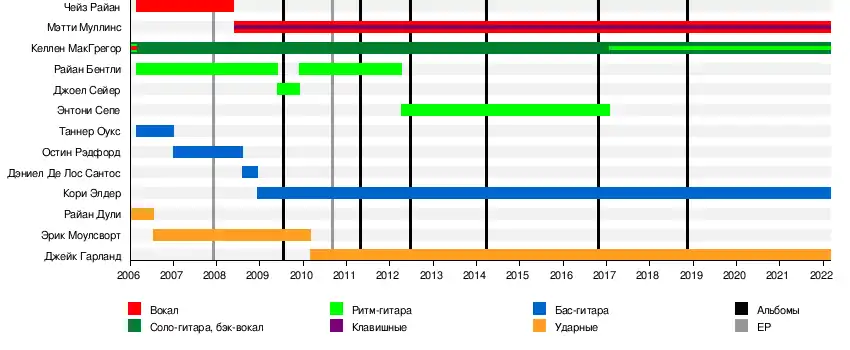 | Состав | Келлен Макгрегор, Мэтти Маллинс, Кори Элдер, Джейк Гарланд, Энтони Сепе |