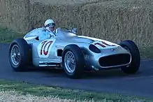 Успех команды продолжился и в сезоне 1955 года, когда снова был использован тот же автомобиль. В качестве пилотов были назначены Фанхио и молодой Стирлинг Мосс, которые в итоге заняли первое и второе места в чемпионате этого года. Однако громкие победы компании продолжались недолго. Авария на гонке в Ле-Мане в 1955 году положила конец спортивной деятельности концерна «Daimler-Benz AG». Во время соревнования француз Пьер Левег, выступавший за команду Mercedes-Benz, был выброшен в толпу, в результате чего погибло более 80 человек. После консультации со Штутгартом, глава гоночного отдела Альфред Нойбауэр снял оставшиеся автомобили с мероприятия. После данного инцидента в знак уважения к погибшим немецкая компания заявила об уходе из автоспорта[3].