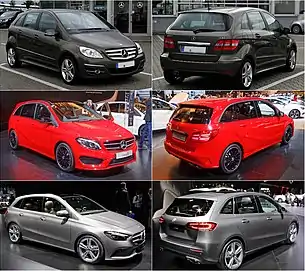 Mercedes-Benz B-класс — серия компактных автомобилей немецкой торговой марки Mercedes-Benz, появившаяся в немецких салонах в марте 2005 года. Впервые была представлена в 2005 году на Женевском автосалоне, а предшествовал серийному автомобилю концепткар Vision B. Производится в Раштатте. Автомобиль несколько больше А-класса, при этом использует его подвеску и двигатели. Также как и А-класс, B-класс имеет передний привод, а начиная со второго поколения и систему постоянного полного привода 4MATIC. Европейский комитет по проведению независимых краш-тестов EuroNCAP относит серию к классу малых многоцелевых автомобилей (MPV)[1].