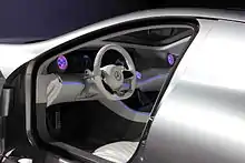 Четырёхместный салон наглядно демонстрирует то, как может выглядеть интерьер люксового автомобиля в ближайшем будущем: в отделке превалируют светлая кожа, полированное стекло, алюминий и неоновая подсветка. Сиденья изготовлены из легковесной алюминиевой конструкции, а в списке оснащения присутствует коммуникационная система на основе технологии Car-to-X[2][6], позволяющая автомобилю обмениваться информацией с другими автомобилями или объектами дорожно-транспортной инфраструктуры. В отделке преобладают белый и графитовый цвета, а алюминий контрастирует со стеклом. Практически все кнопки стали сенсорными, а дизайн интерфейса «опирается» на синюю светодиодную подсветку салона.