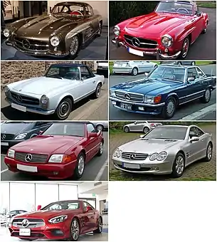 В настоящее время SL-класс насчитывает шесть поколений автомобилей в многочисленных конфигурациях двигателей, в том числе и высокопроизводительные модификации от подразделения Mercedes-AMG.