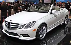 На Североамериканском международном автосалоне 2010 года состоялся дебют кабриолета E-класса (код кузова A207), который пришёл на смену CLK-класс Cabriolet. Это второй кабриолет в семействе Е-класса после кузова W124. Автомобиль оснащён тканевой мягкой складывающейся крышей, которая складывается или открывается за 20 секунд, причём сделать это можно либо при помощи кнопки управления крышей из салона, либо кнопкой на ключе. Механизм, приводящий в движение верхнюю часть кузова, предоставлен фирмой Karmann. По заверениям Mercedes-Benz крыша рассчитана на 20000 циклов складывания. В стандартную комплектацию кабриолета входят системы AirScarf и AirCap: первая осуществляет подачу тёплого воздуха на шеи водителя и переднего пассажира, а вторая выдвигает спойлер из верхней рамки ветрового стекла и ветровой экран за подголовниками задних сидений, которые отводят потоки воздуха при движении автомобиля[18].