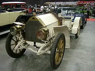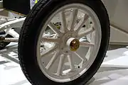 Оригинальные колёса автомобиля 1902 года были сделаны из дерева с металлическими ободами и оснащались пневматическими шинами с шариковыми подшипниками в ступицах[37]. Их дизайн был позаимствован у предшественника — те же 12 несъёмных спиц.