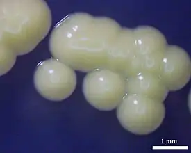 ![]() Колонии Micrococcus luteus на агаре LB (лизогенном бульоне) | ||||||||||