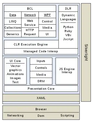 В целом Silverlight представляет собой урезанный вариант Windows Presentation Foundation, не требующий наличия .NET Framework[19].