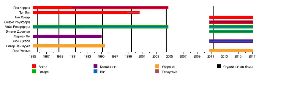 - Эдриан Ли — клавишные (1985—1995)