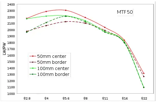Сравнение разрешающей способности макрообъективов 50/2.8 и 100/2.8.