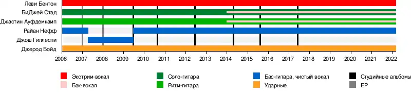 На данный момент группа сохранила первоначальный состав, который был с момента основания (2006), однако басист Райан Нефф покинул коллектив в 2007 году и вернулся в 2009. Второй альбом группы «Monument» вышел 16 августа 2010 года; третий «At Heart» — 12 июня 2012; четвёртый «Rise of the Lion» — 29 апреля 2014; пятый «Deathless» — 7 августа 2015 года; и последний на данный момент, шестой альбом «Shadows Inside» вышел 2 июня 2017 года.