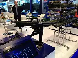 ![]() Mk 47 на станке-треноге M3. Mk 47 тестируется в 2002 в Camp Lejeune. | |