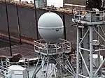 - Первый радар (его антенна в форме параболического цилиндра находится в нижней части колпака) — двухкоординатная обзорная РЛС, обеспечивающая поиск, сопровождение и подсветку надводных целей. Применяется для управления артиллерийским огнём и наведения зенитных ракет на надводные объекты. В режиме «сопровождение во время обзора» сопровождает одновременно 8 целей, из них 2 — для управления оружием[2].