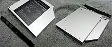 Также, с развитием флеш-накопителей и становлением менее актуальными оптических носителей, выпускаются Mobile Rack для 2,5" HDD или SSD монтируемые в ноутбуках на место оптических приводов[4]. Такие устройства отличаются толщиной — 9,5 мм / 12,7 мм, и интерфейсами подключения (2,5" IDE → 2,5" IDE; 2,5" IDE → SATA; Slimline SATA → SATA; Slimline SATA → M.2 (опционно может быть со встроенным вентилятором)).