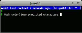 ![]() Mosh, в верхней строке информация о перерыве в подключении, в терминале подчеркнуты символы, предсказанные и отображенные локально. | |