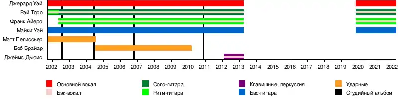 - Фрэнк Айеро — гитара, бэк-вокал (2002—2013, 2019-н.в)