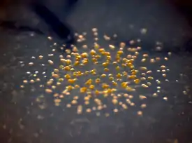 Myxococcus xanthus (лат.) — вид бактерий порядка Myxococcales, обнаруженный в верхнем слое почвы. Питаются они органическими веществами самой почвы, а также другими микроорганизмами путём секреции гидролитических ферментов и антимикробных веществ. В присутствии большого числа питательных веществ формируют совместно питающиеся колонии. Клетки, образующие колонию, передвигаются в сторону потенциальной жертвы (колонии другого вида), распознавая изменения эластических и механических свойств поверхности, вызванные жизнедеятельностью колонии-жертвы. После чего Myxococcus окружает жертву и осуществляется переваривание. В ответ на снижение количества питательных веществ в среде неструктурированная масса вегетативных клеток Myxococcus xanthus реорганизуется в плодовые тела, в которых образуются споры, необходимые для переживания неблагоприятных условий.