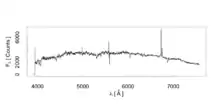 Спектр ядра NGC 1099 в оптическом диапазоне от 3913.0 Å до 7578.1 Å с разрешением 5.8 Å (получен на 3.9-м Англо-австралийском телескопе).