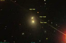 Галактика PGC 11599 или NGC 1203B часто называется частью NGC 1203, но она слишком мала, чтобы Ливенворт мог её увидеть. Это другая галактика, но она, вероятно, взаимодействует с NGC 1203[1].