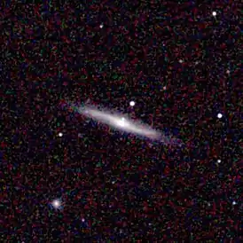Галактика наблюдается с ребра и в ней заметно искривление тонкого диска. Оно вероятно вызвано гравитационным взаимодействием галактики в группе[7].