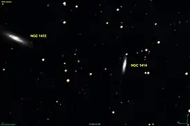 NGC 1414 (другие обозначения — ESO 548-71, MCG -4-9-45, PGC 13543) — спиральная галактика в созвездии Эридан. Открыта Фрэнком Ливенвортом в 1886 году с помощью 26" рефракторного телескопа в обсерватории университета Вирджинии McCormick Observatory.[2] Описание Дрейера: «очень тусклый, довольно маленький, вытятуный в позиционном угле 0° объект, более яркий в середине и в ядре»[3]. Объект составляет NGC 1414 близкую пару с NGC 1422, вплоть до того, что при попытке уточнения координат NGC 1414 астрономом Гербертом Хове (Herbert Alonzo Howe) в 1899 — 1900 годах, координаты NGC 1414, полученные Хове, оказались ближе к принятым сейчас для NGC 1422.[2]