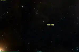 Координаты Уильяма Гершеля указывают на группу из 7-8 слабых звёзд, но к юго-юго-востоку есть более крупное скопление с более яркими звёздами, и, скорее всего, оно и является NGC 2063[1].