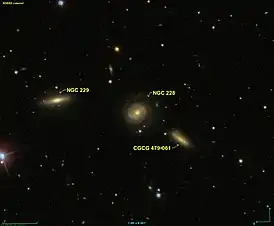 ![]() Изображение, созданное с использованием программного обеспечения Aladin Sky Atlas по данным SDSS. Помимо NGC 228, на изображении присутствуют NGC 229 из «Нового общего каталога» и CGCG 479-061 из «Каталога Цвикки». | |