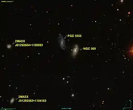 NGC 569 (другие обозначения — UGC 1063, IRAS01264+1052, MCG 2-4-53, ZWG 436.63, MK 997, KCPG 34A, PGC 5548) — спиральная галактика в созвездии Рыбы. Открыта Альбертом Мартом в 1864 году, описывается Дрейером как «очень тусклый, очень маленький объект круглой формы[2]».