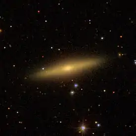 Галактика видна с ребра. Дисперсия скоростей звёзд монотонно уменьшается от 170 км/с в центре до 100 км/с в диске. Не проявляет сильных эмиссионных линий, видны лишь узкие слабые эмиссионные линии в самом центре. В галактике обнаружен нейтральный водород, но не наблюдается никаких признаков недавнего звездообразования. Возраст звёзд в ядре ок. 9 млрд лет, в балдже ок. 8 млрд лет, в диске на расстоянии 20...40 секунд дуги от центра — ок. 5 млрд лет[3][4].