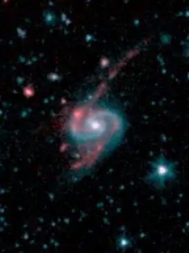 Вместе с NGC 93 образует пару взаимодействующих галактик Arp 65; мост между ними не обнаружен[4]. Галактика имеет перемычку, очень слабо закрученные рукава и маленький балдж, от которого к северо-западу и юго-востоку отходят длинные хвосты[4]. Области ионизированного водорода (HII) наблюдаются в ядре и (слабые) в отдельных частях рукавов, одна особенно яркая область HII видна в северном хвосте[4].