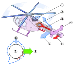 Применение направленного воздушного потока для компенсации реактивного момента было опробовано в 1945 году на британском вертолёте Cierva W.9.