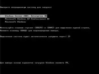 Для формирования меню, показанного выше, был использован файл boot.ini следующего содержания: