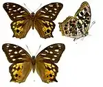 Бабочки средних размеров. Окраска верхней стороны крыльев коричневатая с многочисленными желтоватыми пятнами и темными «глазками». окраска нижней стороны крыльев (особенно задних) — пёстрая. Передние крылья треугольной формы, широкие, с дугообразно изогнутым костальным краем, внешний край выпуклый, анальный — прямой. Задние крылья округло-овальные, с волнистым внешним и вогнутым анальным краями. Передние ноги, как у самцов, так и у самок — недоразвиты и не функционируют при хождении. Средние и задние ноги развиты полностью, голени с парой шпор, а лапки с сильно развитыми коготками[1].