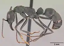 Среднего размера муравьи (около 1 см) с крупными многозубчатыми жвалами. Основная окраска чёрная; концевая часть усиков светлее. Голова, грудь и брюшко чёрные. Скапус усиков длинный, чёрный. Глаза большие выпуклые, расположены в среднебоковой части головы. Жало развито. Стебелёк между грудкой и брюшком одночлениковый, состоит из петиоля. Хищники и сбощики падали. Семьи малочисленные (менее, чем с 100 муравьёв, в среднем 39 особей на семью), полигинные (с несколькими самками)[1][2].