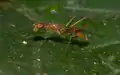 Micropezidae sp. (500 видов), мимикрирующий муравьям рода Oecophylla