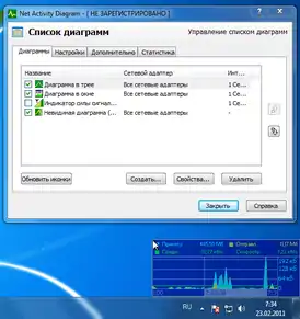 - Иконки в системном лотке и плавающие диаграммы, а также их детальная настройка (смена цвета, размера шрифта и регулировка прозрачности).